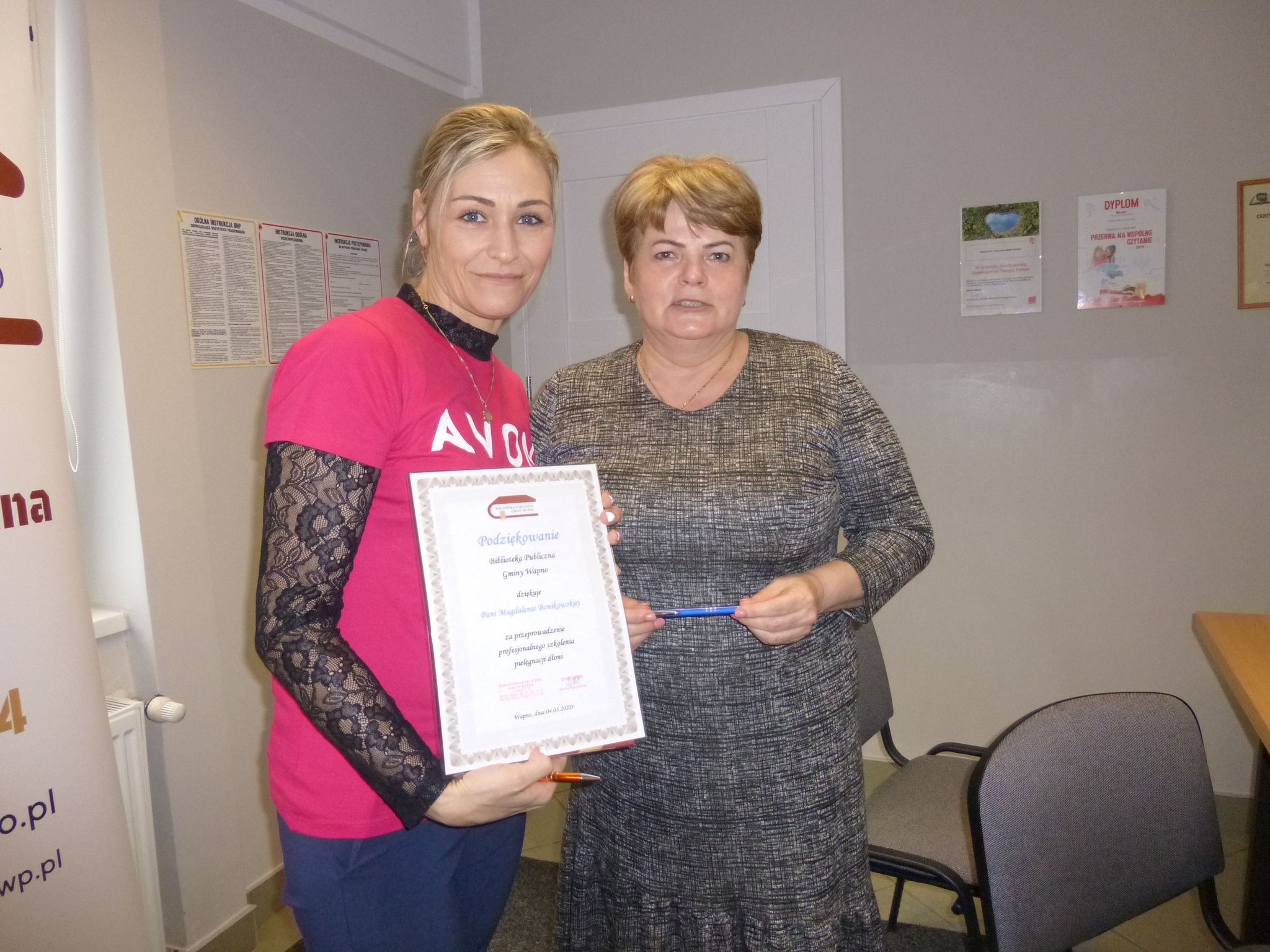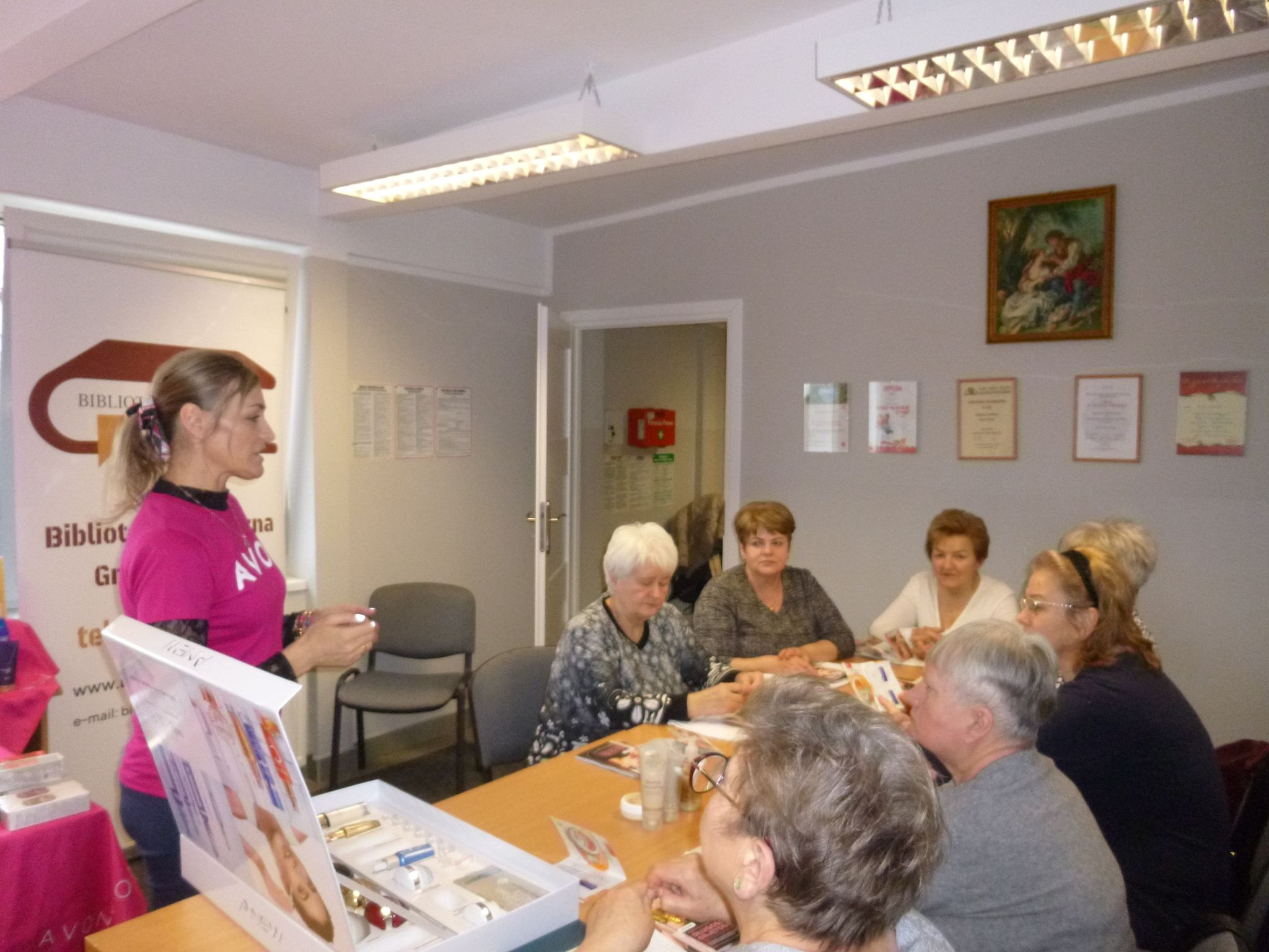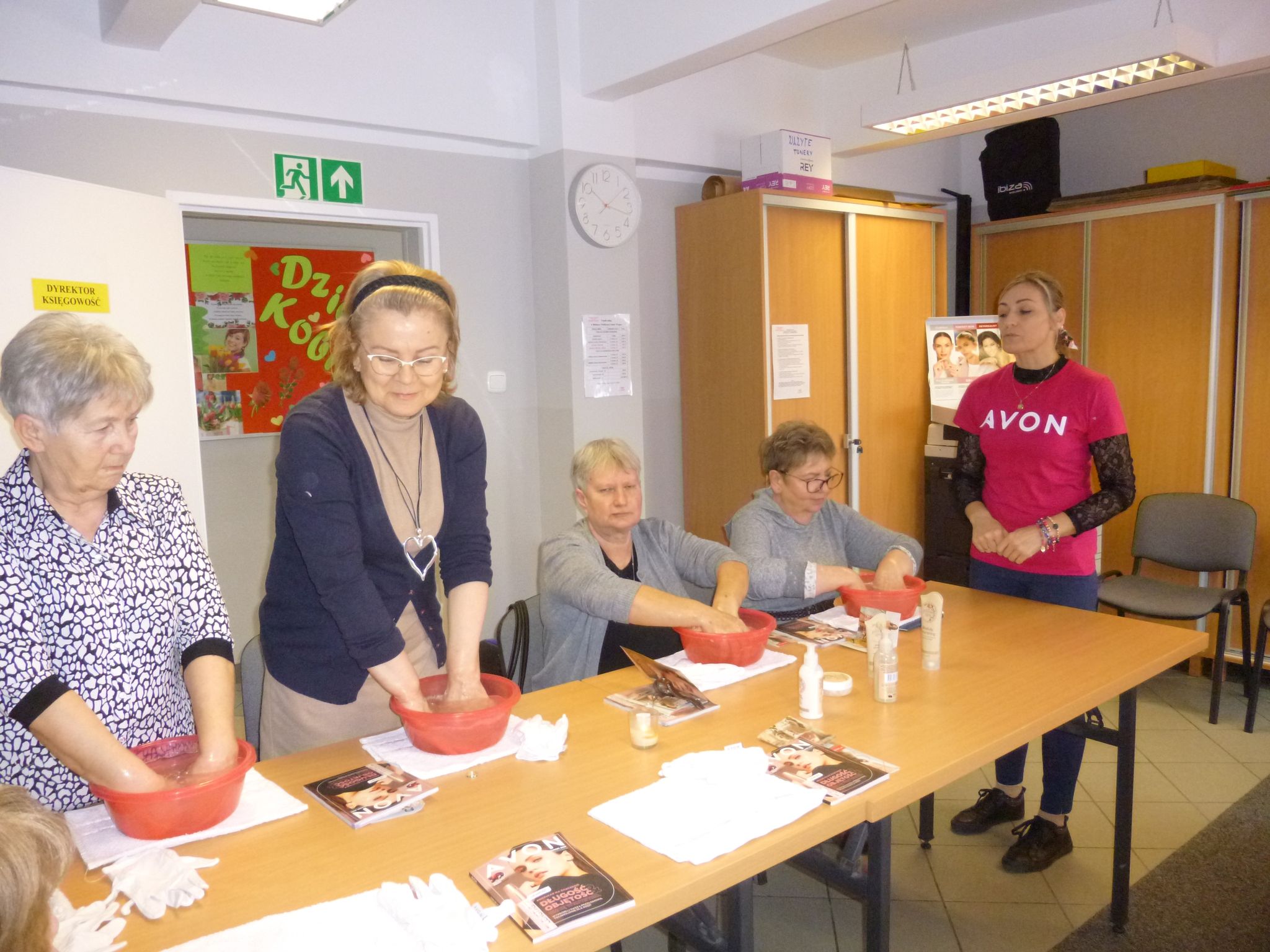 Na uroczystość zaprosiliśmy Panią Magdalenę Bonikowską przedstawicielkę firmy Avon, która przeprowadziła profesjonalne szkolenie z zakresu pielęgnacji dłoni i twarzy. Panie same wykonywały zabieg dłoni korzystają z kosmetyków Avon. Najlepszym sposobem poprawienia elastyczności skóry dłoni jest stosowanie kosmetyków z serii Planet Spa : mydło, odżywczy peeling, odżywcza maska z masłem shea oraz krem. Poznaliśmy jak zadbać o dłonie i poprawnie oczyścić i nawilżać twarz. Każda z pań otrzymała drobny upominek. Jeszcze raz bardzo dziękujemy Pani Magdalenie za udział w naszym spotkaniu i profesjonalne szkolenie.