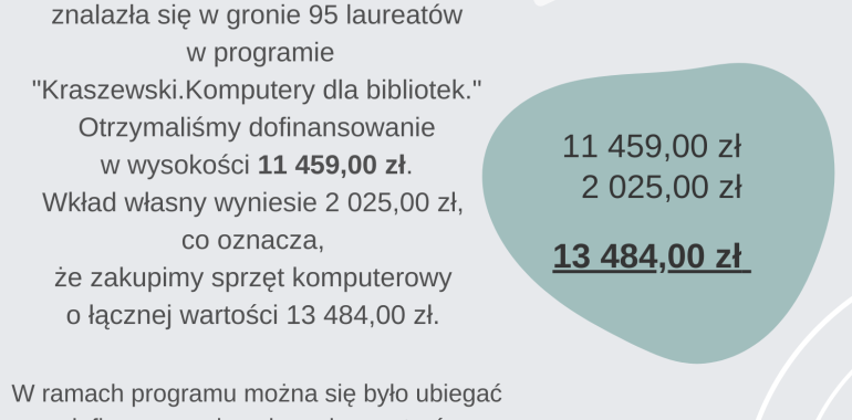 Biblioteka Publiczna Gminy Wapno otrzymała dofinansowanie.